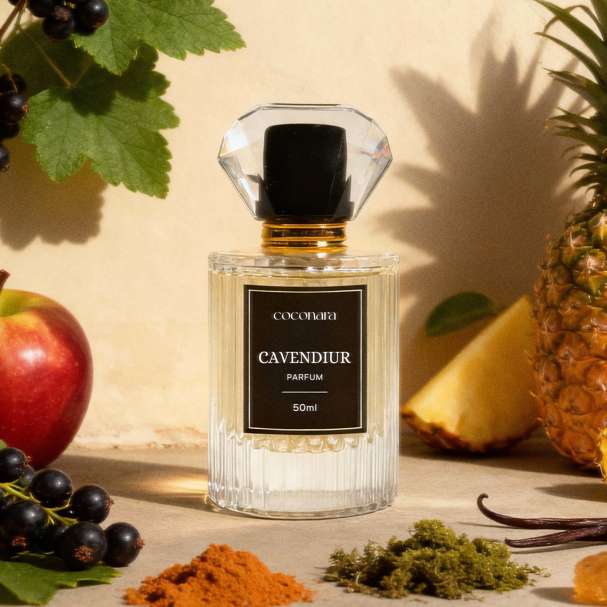 Cavendiur embodies success, power, and sophistication. It opens with a captivating blend of pineapple, blackcurrant, and bergamot, layered with birch and patchouli, and finishes with a strong base of musk, oak moss, and ambergris.